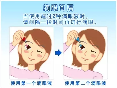 ▲ 當(dāng)使用超過2種滴眼液時(shí),請間隔一段時(shí)間再進(jìn)行滴眼。間隔時(shí)間 為5分鐘以上。