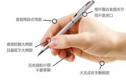 建議:保持正確坐姿的同時,采取拇指與食指不相碰的姿勢,不僅書寫時用力更科學,也不會遮擋目光,從而保證孩子用眼的科學。