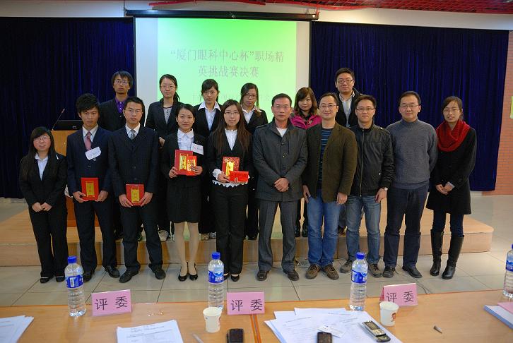 歷時(shí)半個(gè)月,由廈門(mén)大學(xué)研究生會(huì)主辦、廈門(mén)眼科中心協(xié)辦的“‘廈門(mén)眼科中心杯’職場(chǎng)精英挑戰(zhàn)賽”近日在廈門(mén)大學(xué)順序落下帷幕,廈門(mén)大學(xué)團(tuán)委以及廈門(mén)眼科中心行政院長(zhǎng)李曉峰為獲獎(jiǎng)選手頒發(fā)了證書(shū)。