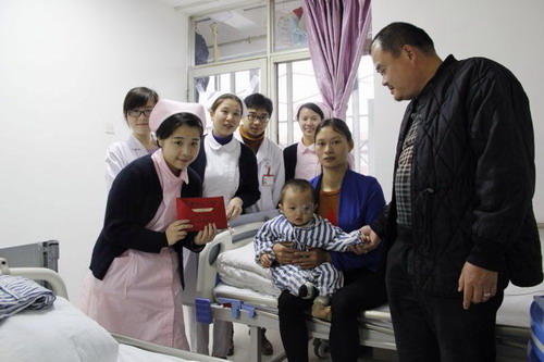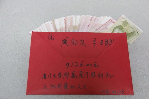由于小燦寶家境不好,全家九口人,上面有年邁的爺爺奶奶,加上小燦寶兩兄弟,小燦寶媽媽要照顧兩個年幼的孩子無法工作,另外,小燦寶大伯幾年前去世,小燦寶大伯母離家未歸,大伯家的三個孩子也是小燦寶父母代為照顧,九口人只有小燦寶爸爸工作養(yǎng)家。護(hù)士梁嘉惠了解到情況后,與護(hù)士長陳秋蓮商量在微信朋友圈發(fā)起愛心捐款。經(jīng)過三天募集,一共募集到9926元善款。