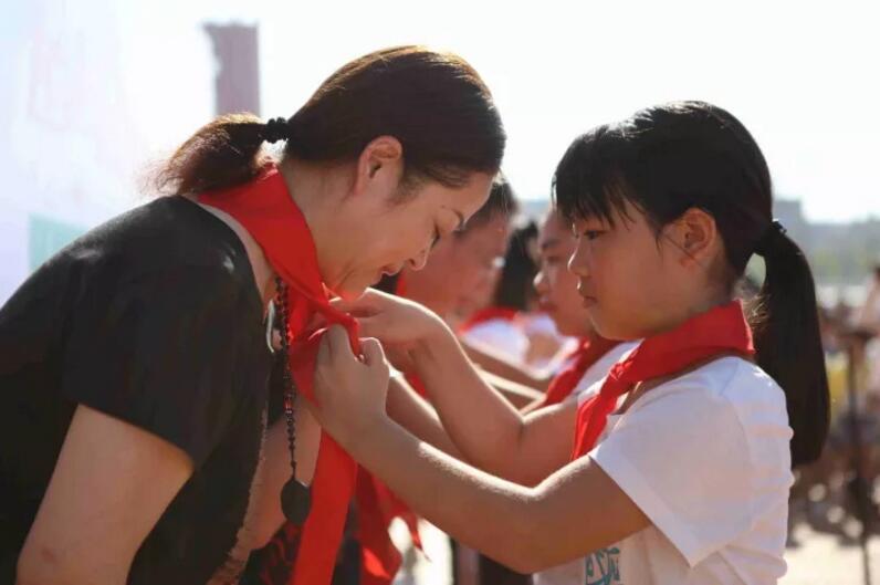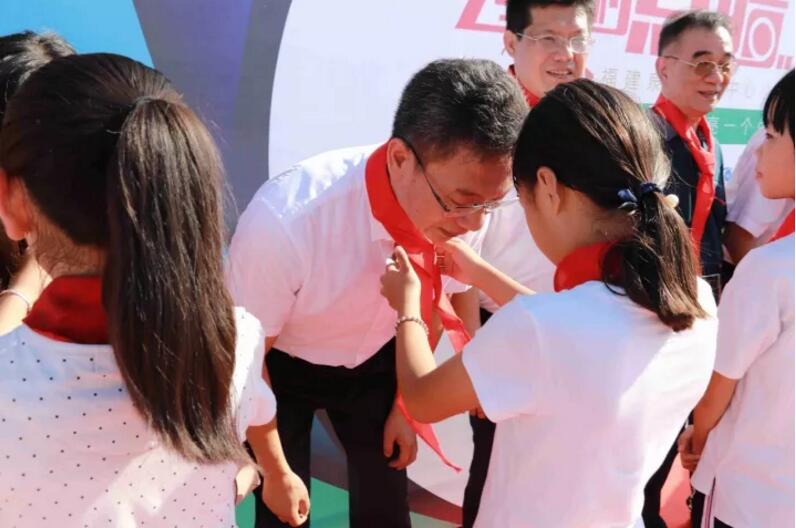 ▲學生代表為廈門眼科中心李曉峰院長系紅領巾