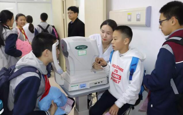 緊接著,研學(xué)團(tuán)一行走進(jìn)廈門眼科中心驗(yàn)光部、特檢區(qū)、小兒眼科門診區(qū),同學(xué)們更系統(tǒng)直觀的了解眼科知識(shí)、眼科高端檢查設(shè)備,開拓了視野。