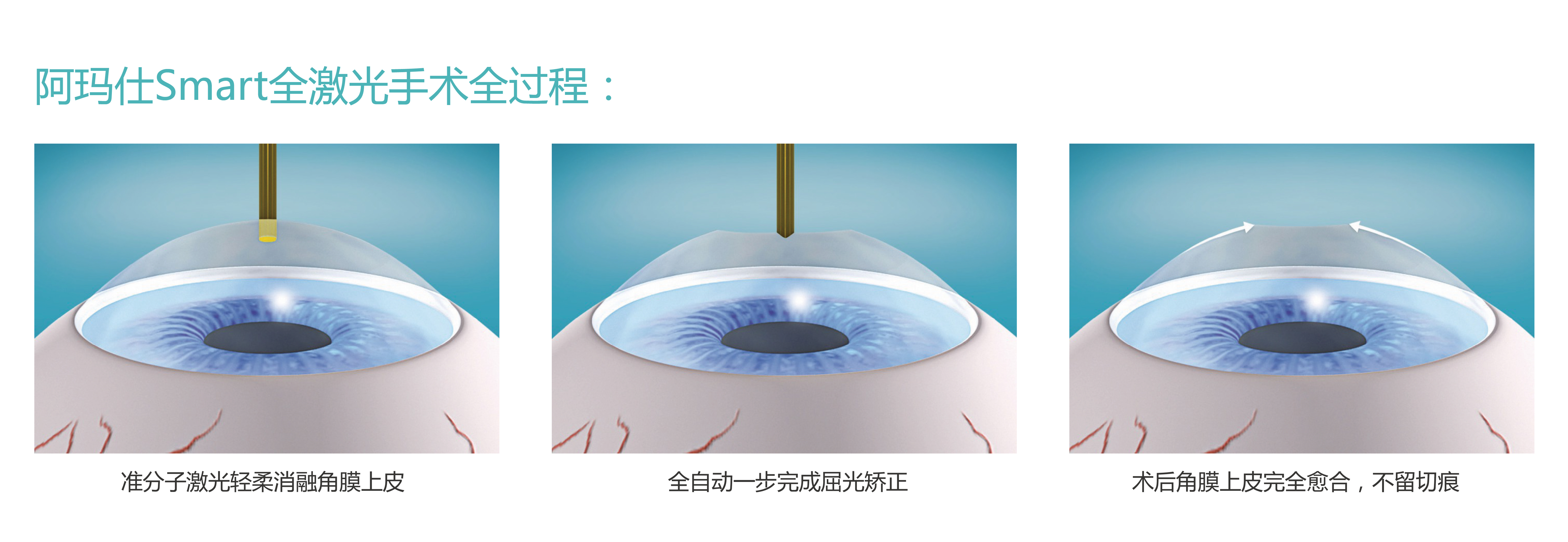 Smart全激光手術(shù)是一種表層角膜屈光手術(shù)方式。激光直接經(jīng)角膜上皮進行治療,一步完成角膜上皮切割和屈光不正的矯正。