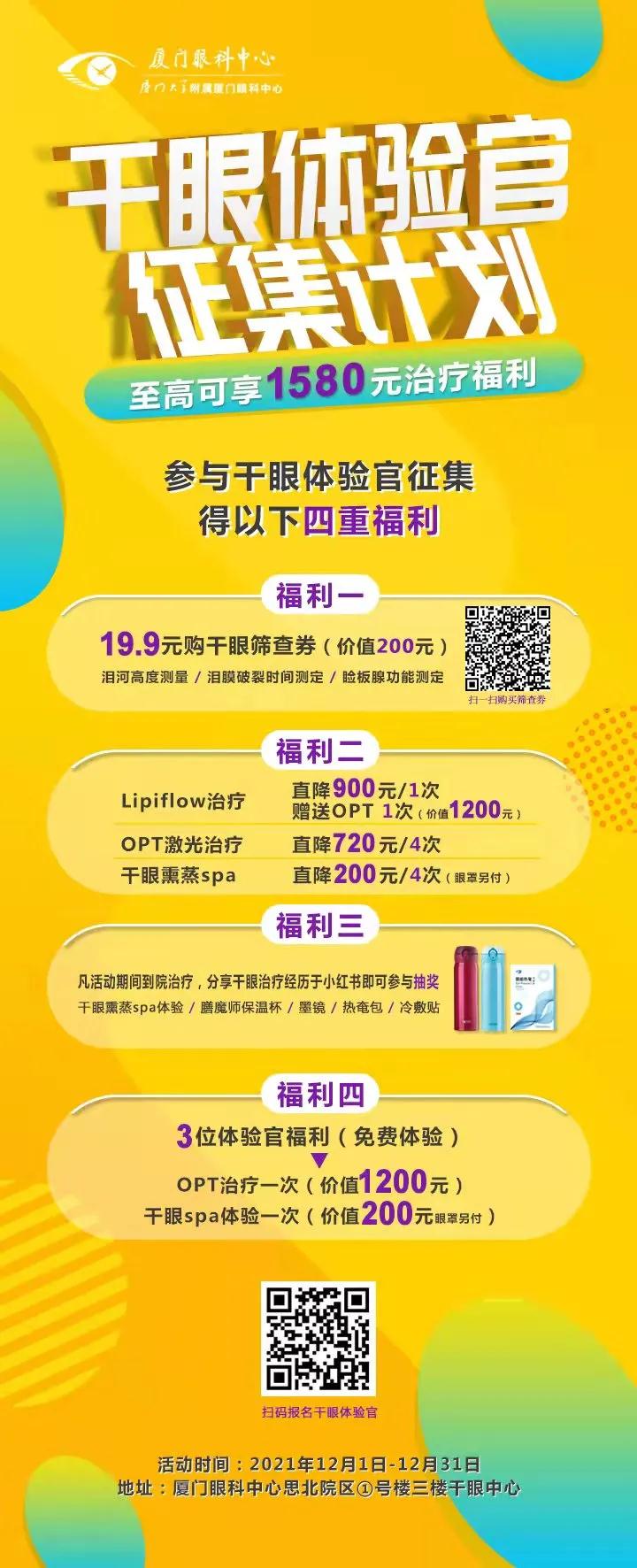 · 體驗官福利:我們將在2022年1月5日篩選出3位干眼體驗官,入選體驗官可免費體驗價值1400元干眼治療套餐: