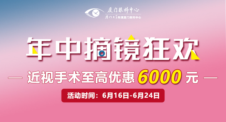 活動時(shí)間:6月16日—6月24日活動期間,預(yù)存10000元,ICL/全飛秒/臻飛秒/星飛秒/smart可享3000元摘鏡優(yōu)惠;半飛秒即享1500元摘鏡優(yōu)惠。