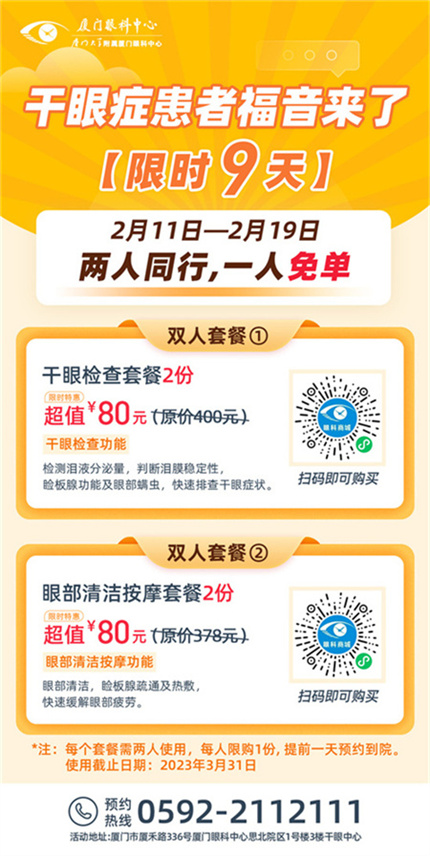 ① 2月11日-19日,80元可購2份原價400元的干眼綜合檢查;