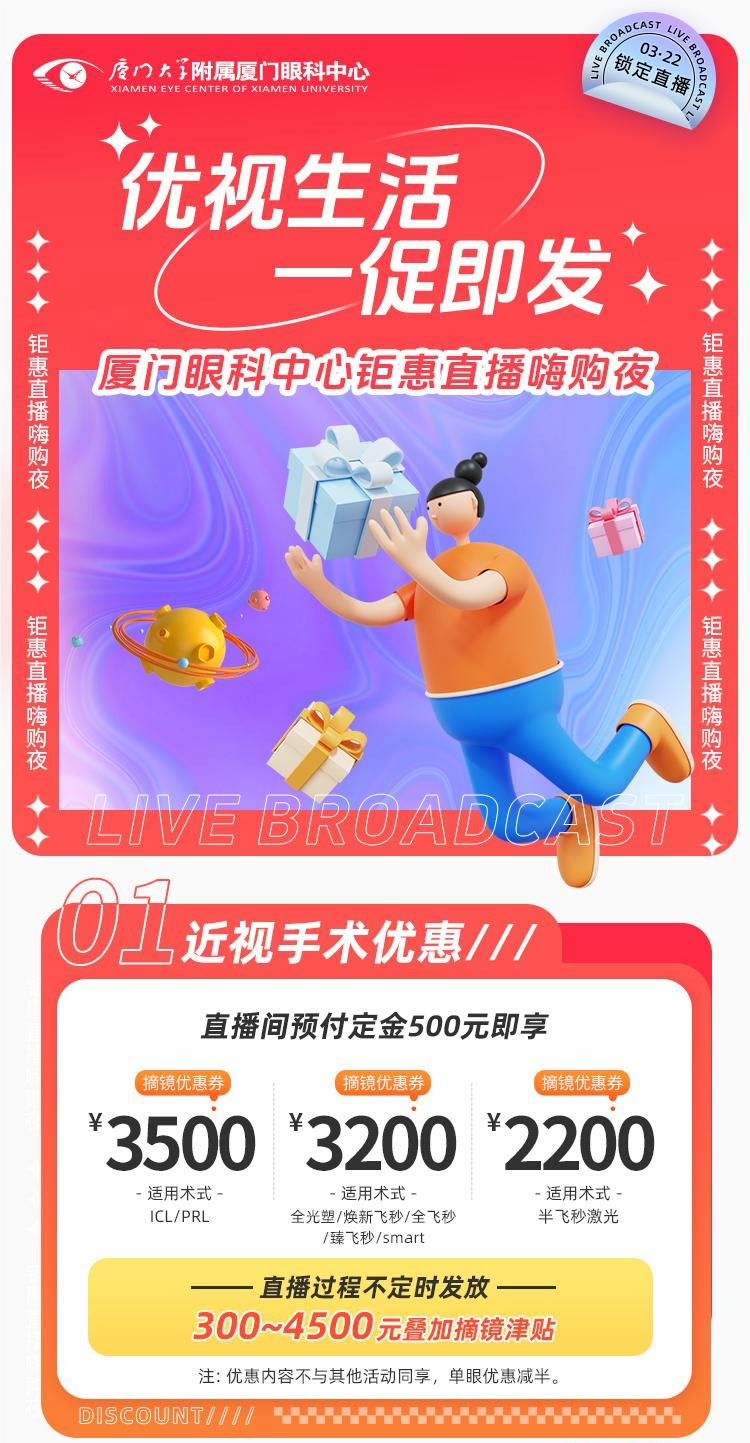 至高8000元近視手術津貼、配鏡檢查套餐低至19.9元!廈門眼科中心直播活動來啦→