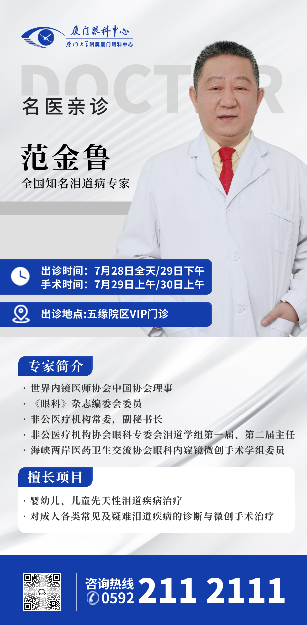 7月28-30日,全國知名淚道病專家范金魯?shù)綇B親診!預約從速→