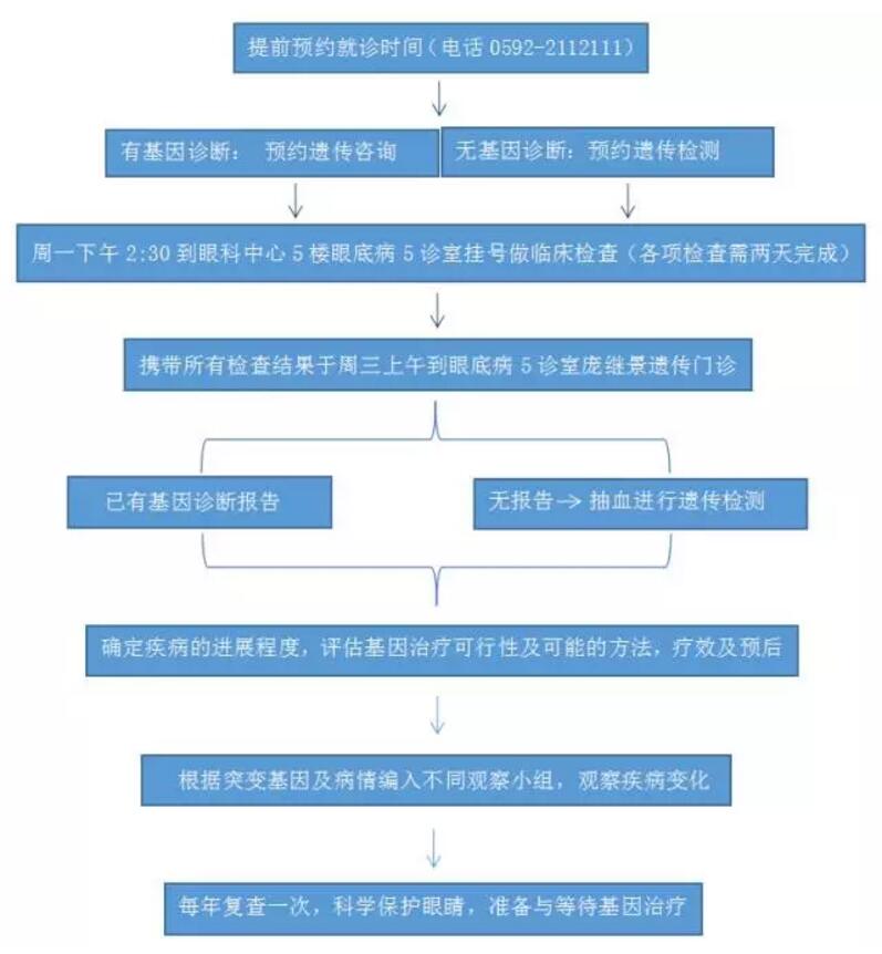 為了既滿(mǎn)足患者需求又提升門(mén)診效率,龐教授優(yōu)化就診流程,“凡預(yù)約周三上午眼遺傳病門(mén)診的患者,需提前在周一下午2:30到院,進(jìn)行需要兩天才能完成的包括眼底照相,OCT,ERG,VEP,光敏感度/視野等各項(xiàng)檢查。周三上午拿著檢查結(jié)果及基因檢測(cè)報(bào)告進(jìn)行龐教授的門(mén)診咨詢(xún)。”這樣更有利于在現(xiàn)場(chǎng)當(dāng)面對(duì)患者的病情做出評(píng)估,以滿(mǎn)足患者希望盡快了解自己病情及治療可能性的需求,也可以免去門(mén)診中途再去做各項(xiàng)檢查的時(shí)間。