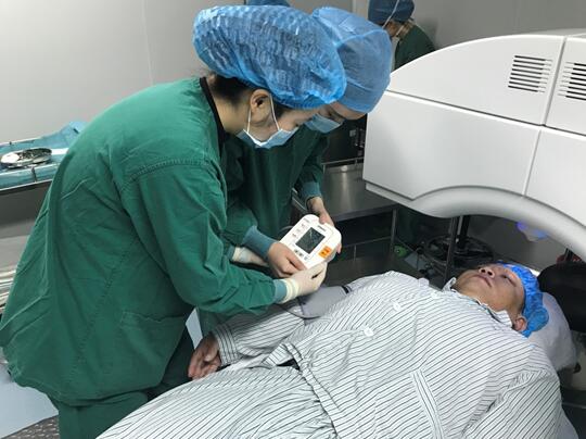 在朋友的介紹下,陳先生來到廈門眼科中心屈光手術(shù)中心找黎新主任做術(shù)前檢查。了解到他曽有腦溢血病史,在陳先生做完術(shù)前檢查后,黎新主任聯(lián)合內(nèi)科專家、麻醉科專家以及屈光手術(shù)中心的護(hù)理團(tuán)隊(duì)一起進(jìn)行了會(huì)診,會(huì)診后專家們一致認(rèn)為雖然陳先生患過腦溢血,但目前已經(jīng)治好,而且近年來血壓控制得當(dāng),以檢查的情況來看,目前他的血壓控制在120mmHg 85mmHg,屬于正常范圍內(nèi),血壓穩(wěn)定的話通常是可以進(jìn)行近視手術(shù)的。