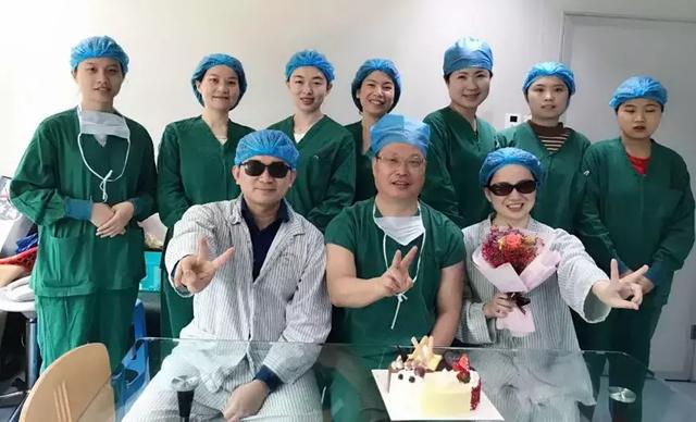 術(shù)后休息了會兒,裂隙燈檢查了角膜,兩人手術(shù)都很成功。當(dāng)天是護(hù)士節(jié)前一天,恰逢醫(yī)院工會給護(hù)士們送來溫馨的節(jié)日蛋糕,兩人的心情也如美味的蛋糕,甜甜美美。