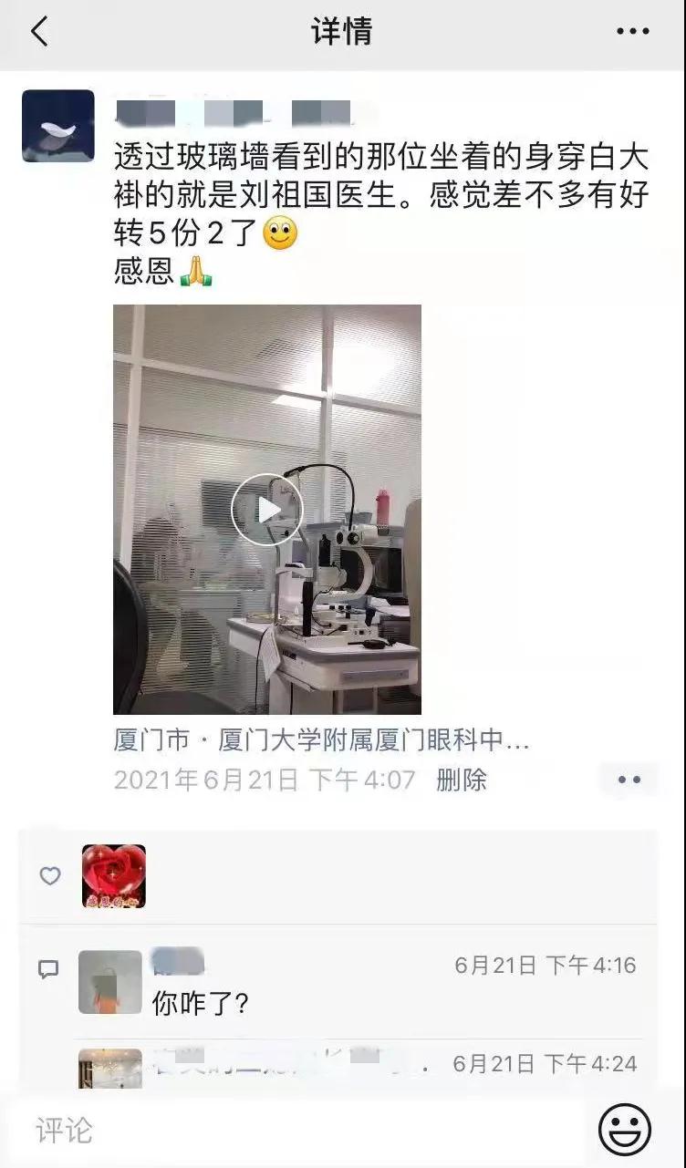 5月24號(hào),這個(gè)日期小雨記得很清楚,那是她來(lái)到廈門(mén)眼科中心治療的第 一天,“我記得我還發(fā)了朋友圈,是在醫(yī)院里吃的一碗面條。”