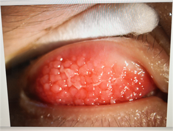在小江的上下眼瞼里布滿了乳頭,兩只眼睛無一幸免,密密麻麻的乳頭擠滿了他的瞼結(jié)膜,甚至找不到一塊稍微平滑的地方。