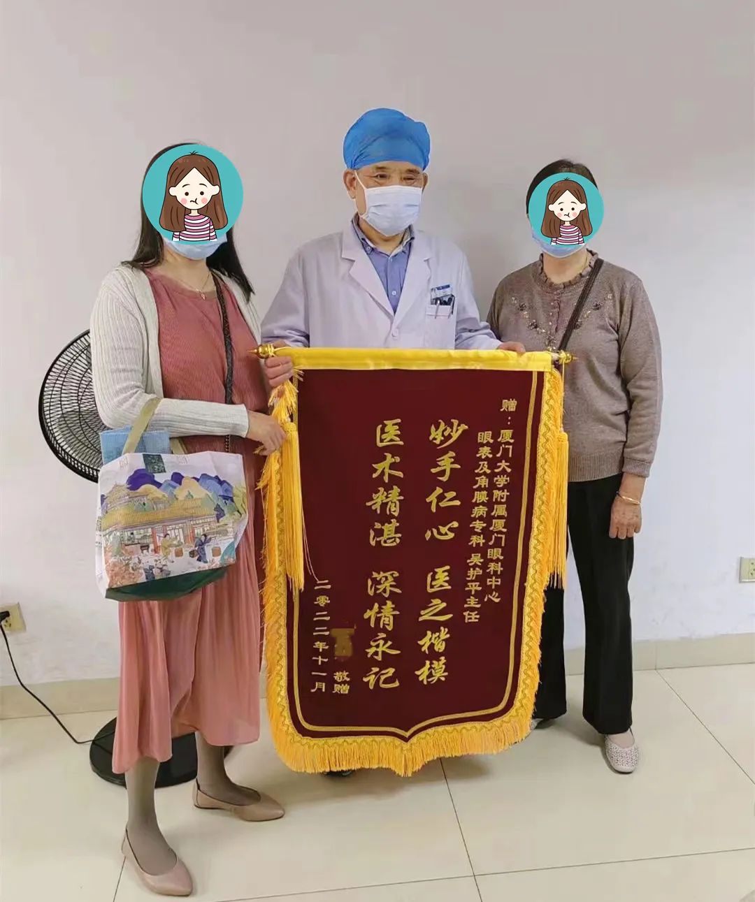 吳女士可以說是醫(yī)院的“老熟人”了,在這近10年的時(shí)間里,她多次出入各地的醫(yī)院,做過大大小小不同的眼部手術(shù),這次來給吳護(hù)平院長(zhǎng)送錦旗也是起源于她的眼睛。
