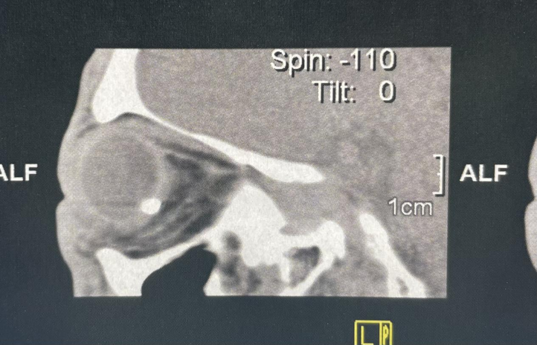 送抵廈門眼科中心時(shí),陳先生左眼已完全喪失視力,還伴有明顯的枕后疼痛癥狀,情況十分危急。當(dāng)日急診醫(yī)生立即為其展開全面檢查,檢查結(jié)果令人揪心:入眼異物位于靠近眼球后壁的眼窩深處,不僅緊鄰顱腦,還與眼底視神經(jīng)“近在咫尺”。這個(gè)特殊位置讓手術(shù)團(tuán)隊(duì)面臨嚴(yán)峻挑戰(zhàn),如果在取出過程中出現(xiàn)任何意外,損傷視神經(jīng),陳先生的左眼將面臨永久性失明的嚴(yán)重后果。