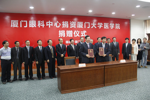 2013年11月18日上午十點(diǎn),在廈門大學(xué)恩明樓科技藝術(shù)中心舉行了隆重的捐贈(zèng)儀式,廈門大學(xué)附屬廈門眼科中心向廈門大學(xué)醫(yī)學(xué)院捐贈(zèng)了1000萬元,并簽署了捐贈(zèng)協(xié)議,中共福建省廈門市委副書記、市長劉可清,廈門大學(xué)校長朱崇實(shí)、市老領(lǐng)導(dǎo)洪永世,市委常委、宣傳部長葉重耕,副市長黃強(qiáng)等領(lǐng)導(dǎo)共同見證了簽約儀式。據(jù)悉,此次由眼科中心捐出的款項(xiàng),將用于支持廈大醫(yī)學(xué)院的建設(shè)和發(fā)展,助力醫(yī)學(xué)院教學(xué)科研工作及人才培養(yǎng)。