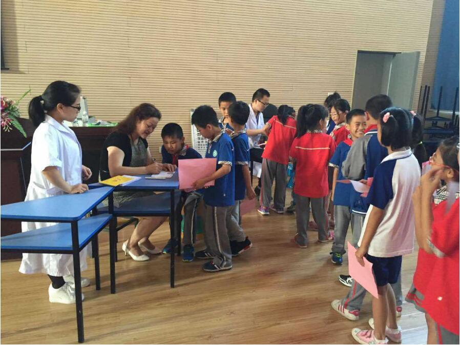 講座結(jié)束后,潘主任還為現(xiàn)場(chǎng)的孩子們免費(fèi)進(jìn)行眼睛檢查,孩子們的熱情很高也很配合潘主任的檢查。
