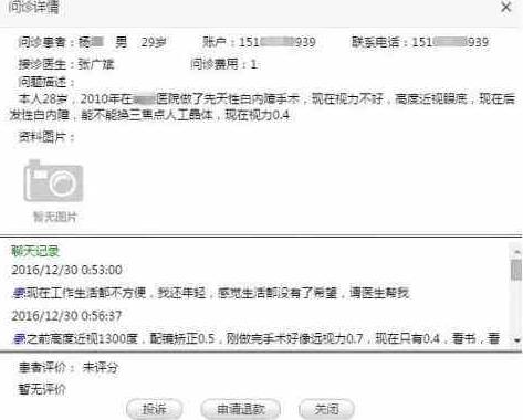 12月30日0:53,28歲的先天性白內(nèi)障患者小楊在眼科通APP上發(fā)出圖文咨詢:本人29歲,之前先天性白內(nèi)障,高度近視1300度,配鏡矯正視力0.5,2010年在某醫(yī)院做了手術(shù),剛做完時(shí)遠(yuǎn)視力0.7,現(xiàn)在后發(fā)性白內(nèi)障,視力只有0.4,看書、看電腦字小、光線不好無(wú)法識(shí)別,能不能換三焦點(diǎn)人工晶體,有沒有好的方案或建議?