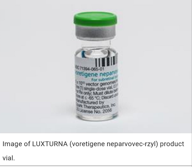 圣誕前夕,從美國傳來了重磅消息:“針對由RPE65基因突變導(dǎo)致的雷柏氏先天性黑朦2型(RPE65基因突變引起)的基因替代療法藥物L(fēng)uxturna(voretigene neparvovec-rzyl)獲FDA批準上市!失明患者重見光明為時不遠!