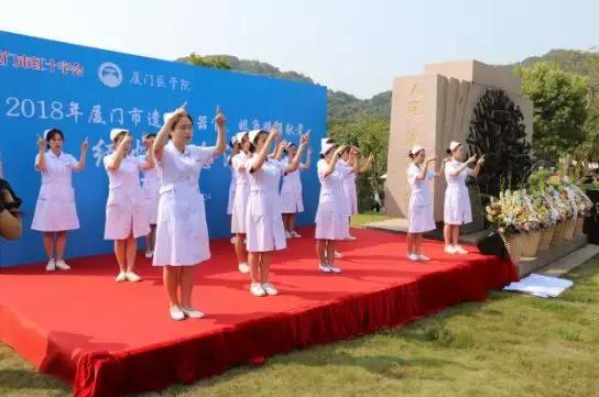 藍(lán)天下,清風(fēng)徐來,菊香陣陣。4月4日上午,在廈門海滄文圃山紀(jì)念園里,廈門市衛(wèi)計委、民政局、廈門市紅十字會、廈門眼科中心的工作人員與廈大醫(yī)學(xué)院、廈門醫(yī)學(xué)院的學(xué)生,以及捐獻(xiàn)者家屬、捐獻(xiàn)志愿者代表等300余人集體緬懷廈門市遺體、器官、眼角膜捐獻(xiàn)者,感恩他們的無私贈予,幫助生者能夠享受生命,擁有光明。