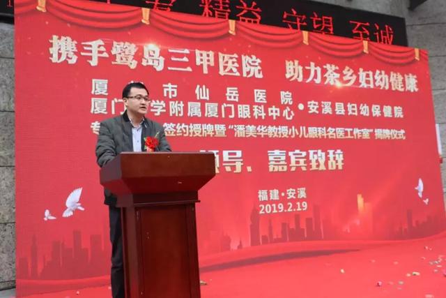 2月19日上午,廈門大學(xué)附屬廈門眼科中心與安溪縣婦幼保健院就小兒眼科共建醫(yī)療聯(lián)合體,并舉行了“潘美華教授小兒眼科名醫(yī)工作室”揭牌儀式。