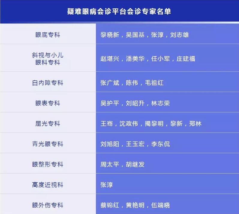 這是一個堪稱“夢之隊”的會診專家團隊,涵蓋眼底、斜視與小兒眼科、白內(nèi)障、眼表、屈光、青光眼、眼整形、高度近視、眼外傷等亞??啤D壳?,中國大陸擁有5位國際眼科科學(xué)院院士,有兩位就在這個會診專家團隊中,分別是廈門大學(xué)附屬廈門眼科中心總院長黎曉新教授、華廈眼科專家委員會主席趙堪興教授。