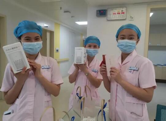 護(hù)理部主任許春麗表示:“今年因?yàn)橐咔榈脑颍o(hù)士們的工作壓力會(huì)更大,特別選擇了小愛同學(xué)智能機(jī)器人藍(lán)牙音響作為禮物,讓護(hù)士們?cè)诠ぷ髦喔玫姆潘尚那椤?rdquo;