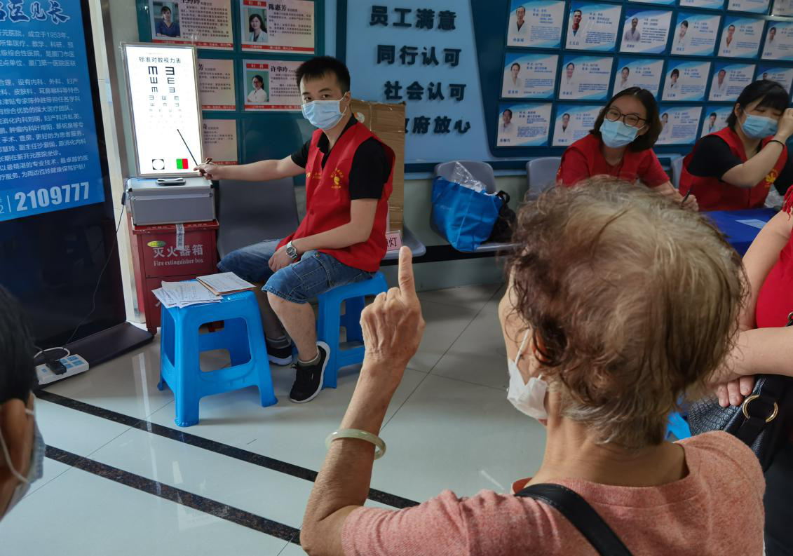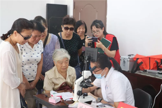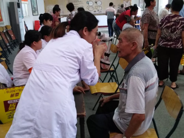 考慮到部分老人不方便出門就醫(yī),志愿服務(wù)隊深入社區(qū)老年活動中心,為老人送醫(yī)送藥,把服務(wù)送到他們的家門口,讓他們足不出戶就可以享受到眼科診療服務(wù)。