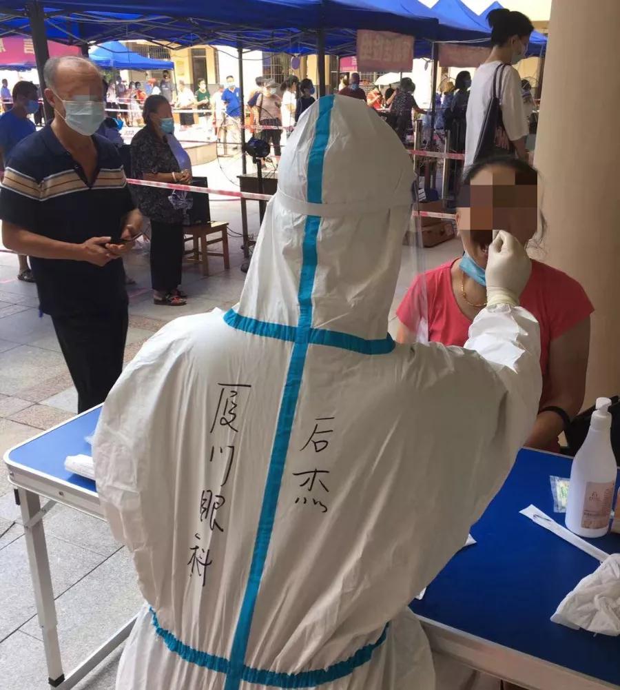 廈門市第三輪全員核酸檢測啟動。依照部署,廈門眼科中心醫(yī)護(hù)人員奔赴各社區(qū)核酸檢測點(diǎn)支援。截止發(fā)稿,廈門眼科中心已派出403名醫(yī)護(hù)人員前往25個社區(qū),助力廈門市打贏疫情防控這場硬仗。作為支援前線的一員,22歲的男護(hù)士——后杰,主動報(bào)名,“隨叫隨到”。