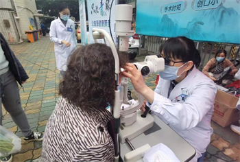 黨員光明先鋒為村民進(jìn)行眼健康檢查