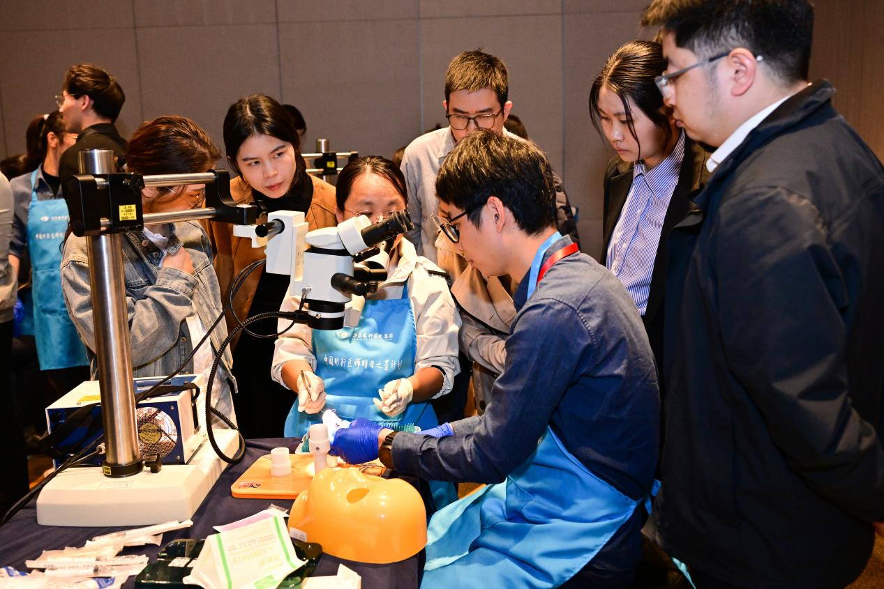 斜視手術(shù)wetlab實操培訓(xùn)吸引了諸多眼科同仁到場參與體驗。廈門眼科中心斜視與小兒眼科的主任醫(yī)師謝仁藝,副主任醫(yī)師楊梅、何歡、王海燕為學(xué)員們一對一講解了斜視手術(shù)的操作要點、技巧,手把手指導(dǎo)學(xué)員在動物眼上實操,大大提升了學(xué)員們的斜視手術(shù)技能。