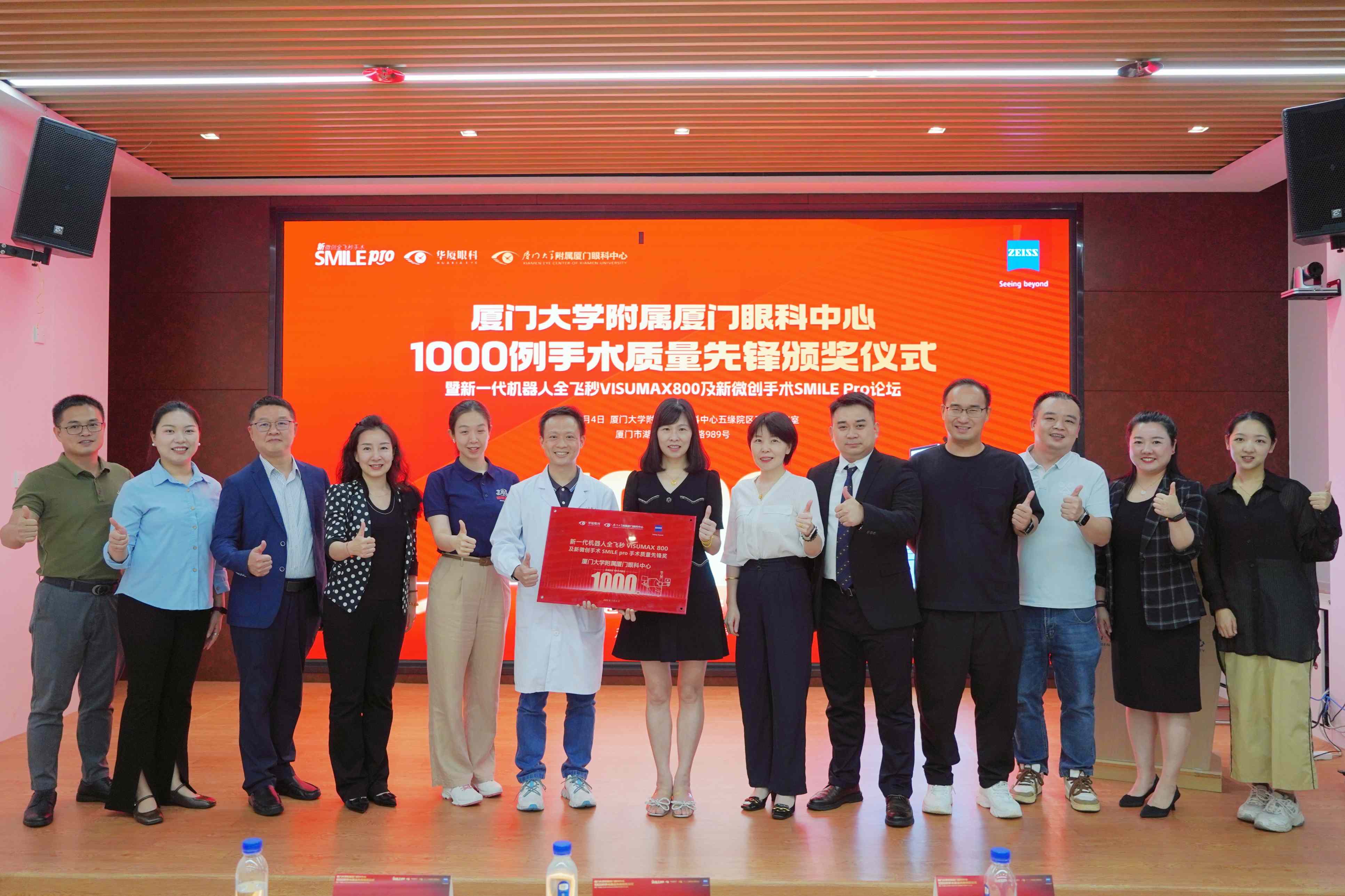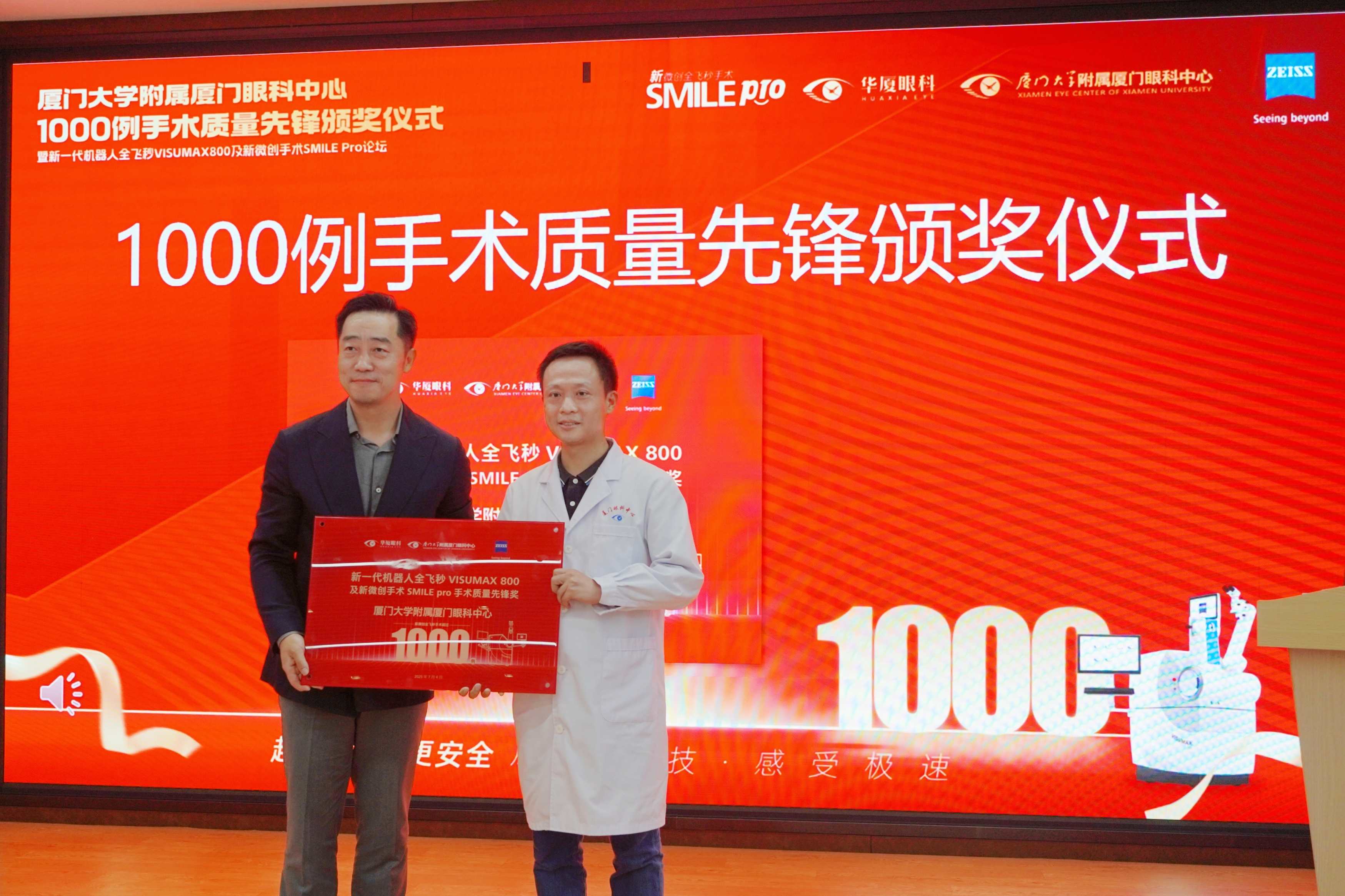 會(huì)議核心環(huán)節(jié),蔡司總部授予廈門眼科中心“SMILE Pro 1000例手術(shù)質(zhì)量先鋒獎(jiǎng)”,這一殊榮是對(duì)廈門眼科中心在全飛秒SMILE Pro手術(shù)領(lǐng)域卓越成就的高度認(rèn)可。