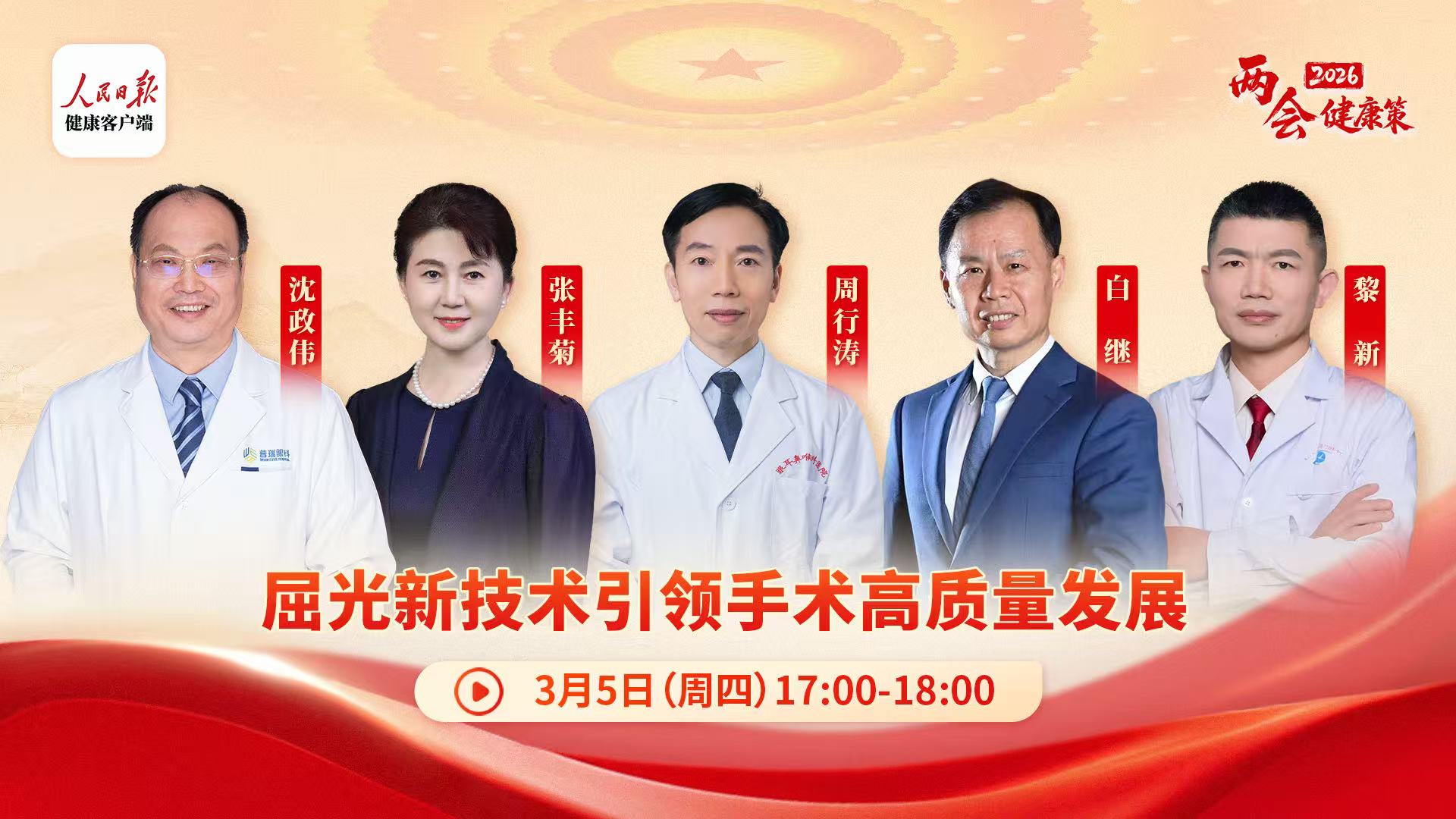 作為兩會(huì)期間最具影響力的健康對(duì)話平臺(tái)之一,本次人民日?qǐng)?bào)健康客戶端“兩會(huì)健康策”眼健康專場(chǎng)重點(diǎn)探討屈光手術(shù)這一高技術(shù)壁壘領(lǐng)域,圍繞如何以科技創(chuàng)新賦能臨床實(shí)踐、讓更多患者享受同步國(guó)際的先進(jìn)診療服務(wù)展開深入交流。